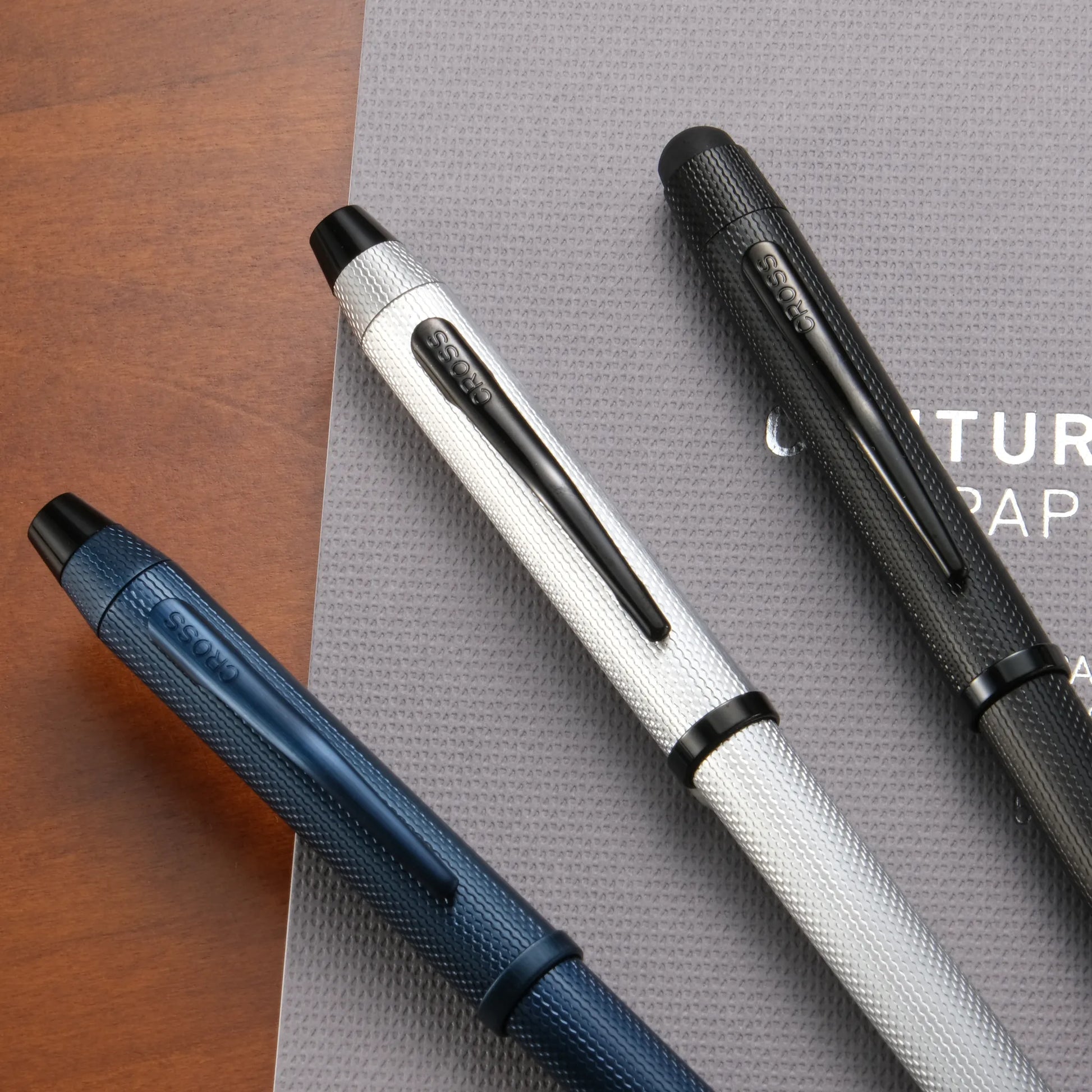 Cover all your writing need bases with the Cross Tech 3+ Multi-function pen! The pen features a classic, modern design and is packed with functionality. With an effortless twist, transform the black ballpoint ink to red, or to a pencil! A stylus is situated at the back of the pen allows you to scroll and click on your touch screen device, and when unscrewed, reveals an eraser.