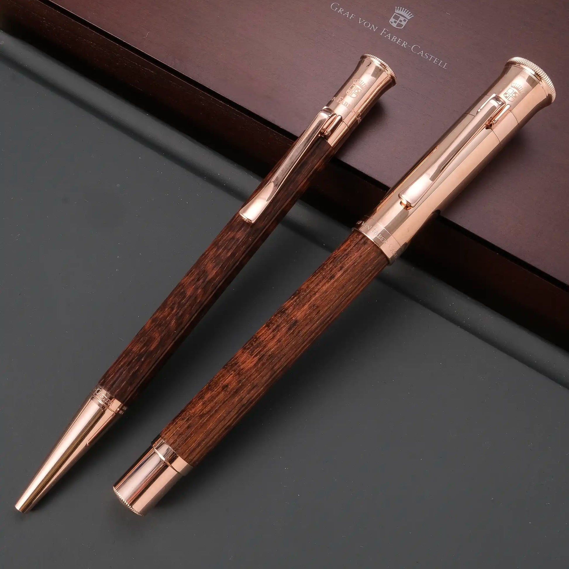 The luxurious rose gold-plated fittings and details provide a warm, romantic contrast to the deep, rich hues of the wood, elevating the pen’s sophistication and visual appeal.