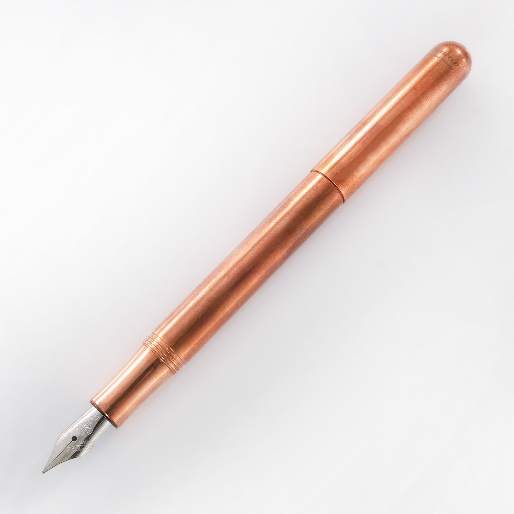 This copper fountain pen has a light finish to help postpone the patina that will come with use, and the copper material makes it so that is a bit heavier than the standard Liliput's aluminum body.