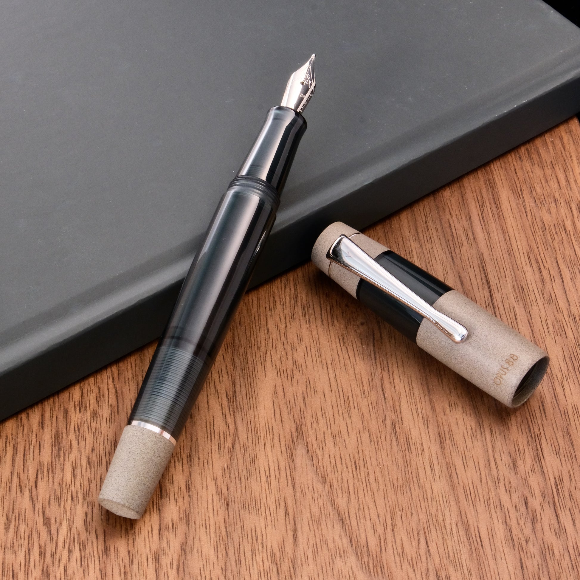 The pen cap, which combines ebonite with translucent acrylic, offers a striking richness and vibrancy to the overall look of the pen.