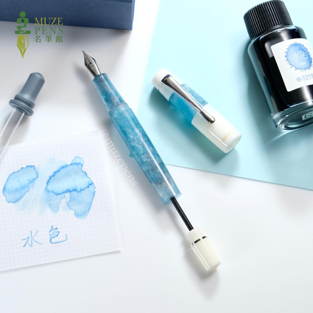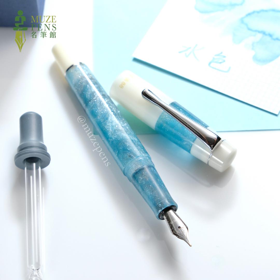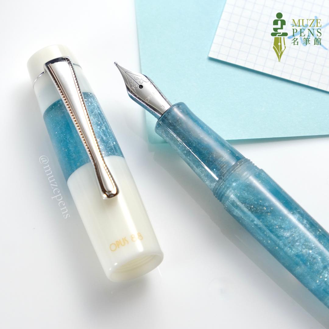 Opus88 has released a blue and white model of their Koloro fountain pen. It features a pen body made with a resin material mixed with silver powder and light blue acrylic, resembling the crystal-clear sandy beach. The pen cap is made of a combination of blue and white acrylic to add a touch of chic.