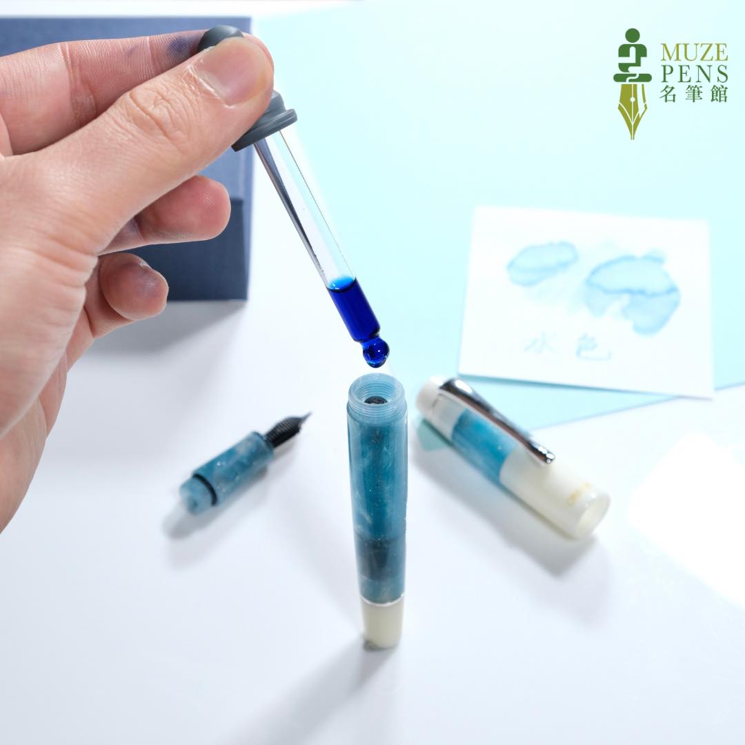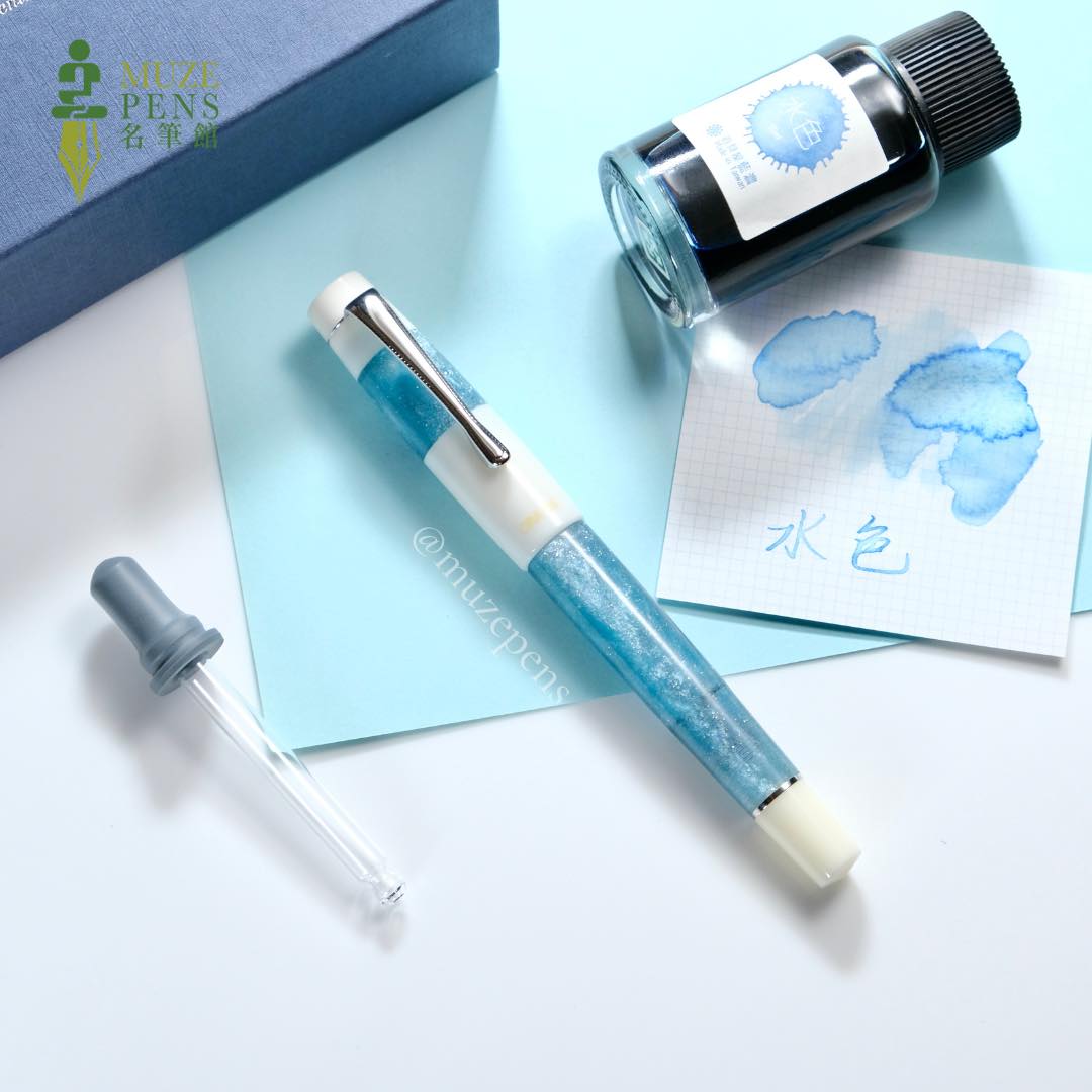 This pen uses an eyedropper filling system that offers a large ink capacity, while it's translucent pen barrel allows you to see the ink flowing inside the pen.