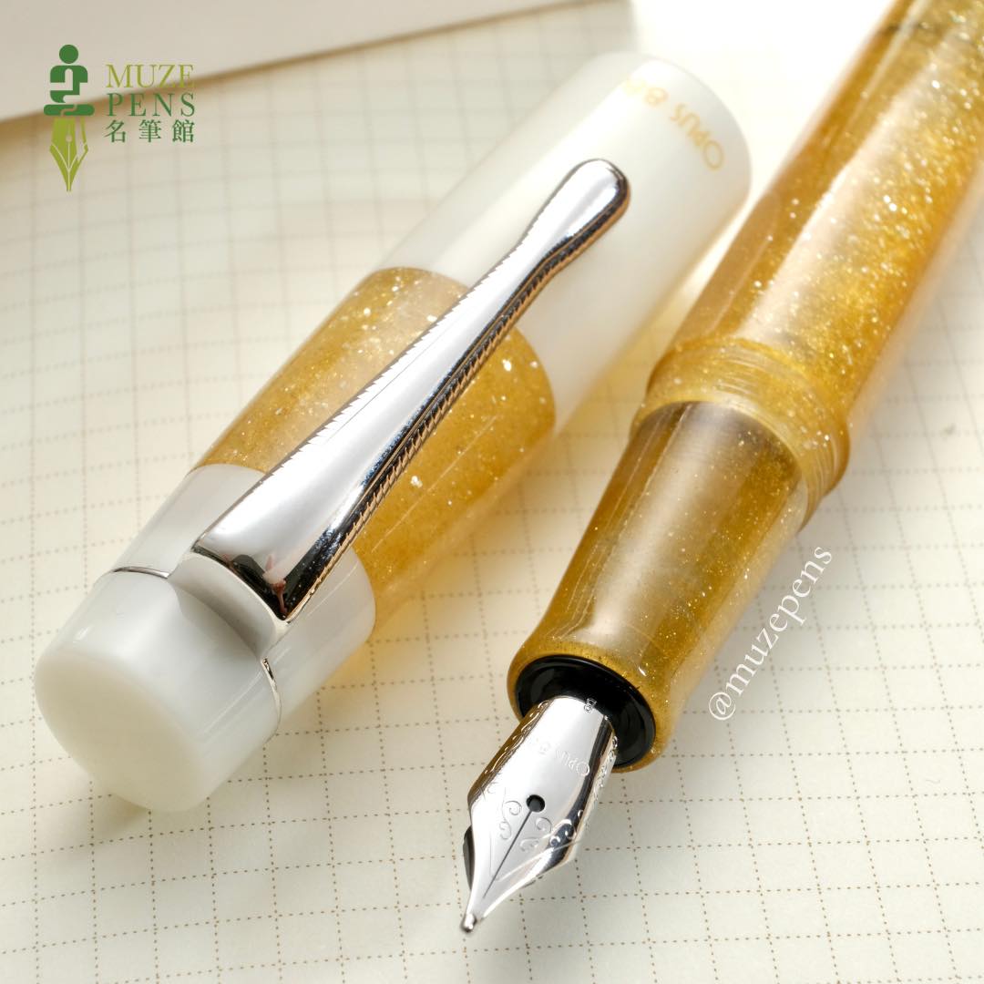 Opus 88's Koloro fountain pen features a bold design with adjoining white resin and translucent yellow acrylic materials, which makes it more challenging to manufacture. The yellow translucent acrylic pen barrel sparkles under the light! In addition, its slim body makes it a comfortable size for those with smaller hands.