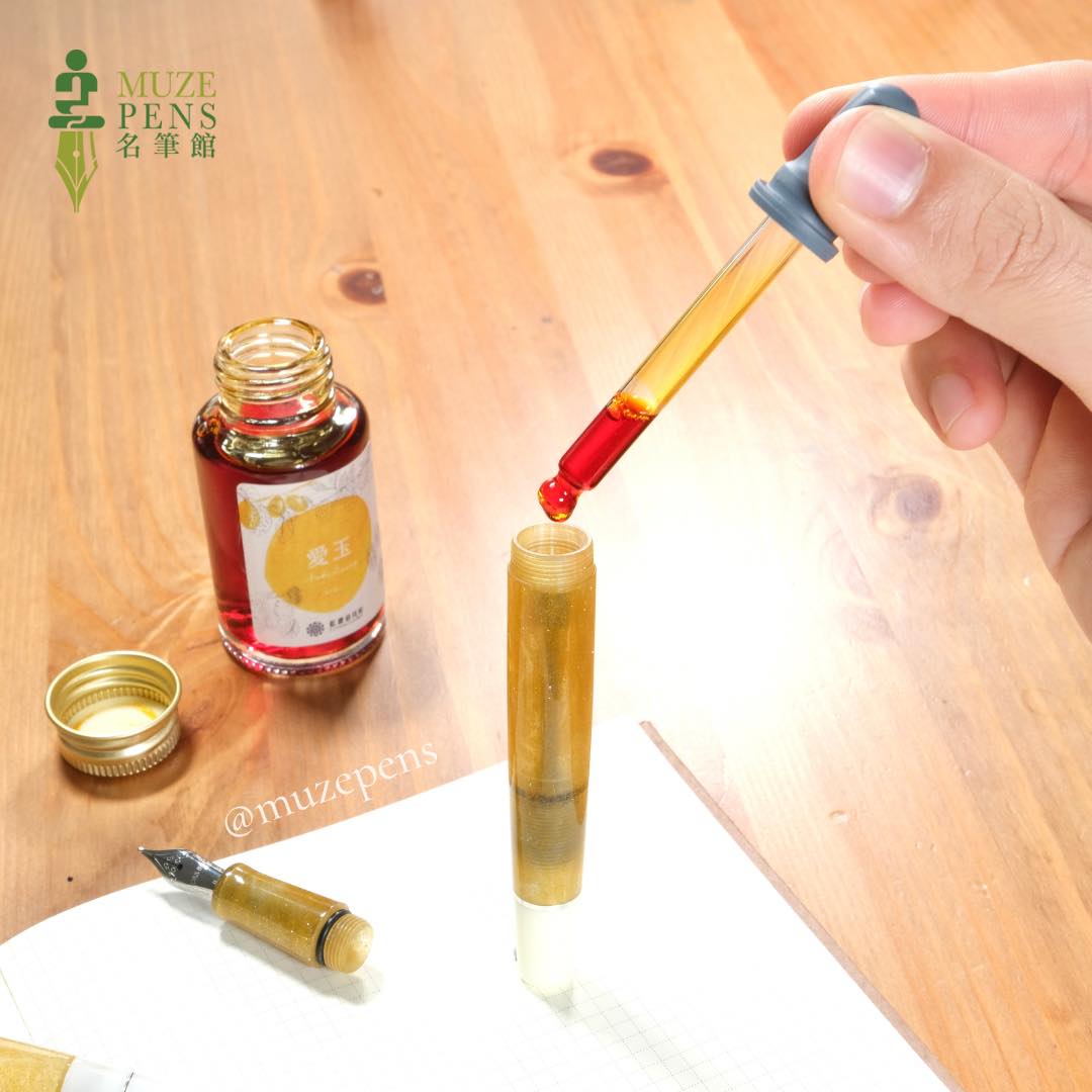 This pen uses an eyedropper filling system that offers a large ink capacity, while it's translucent pen barrel allows you to see the ink flowing inside the pen.