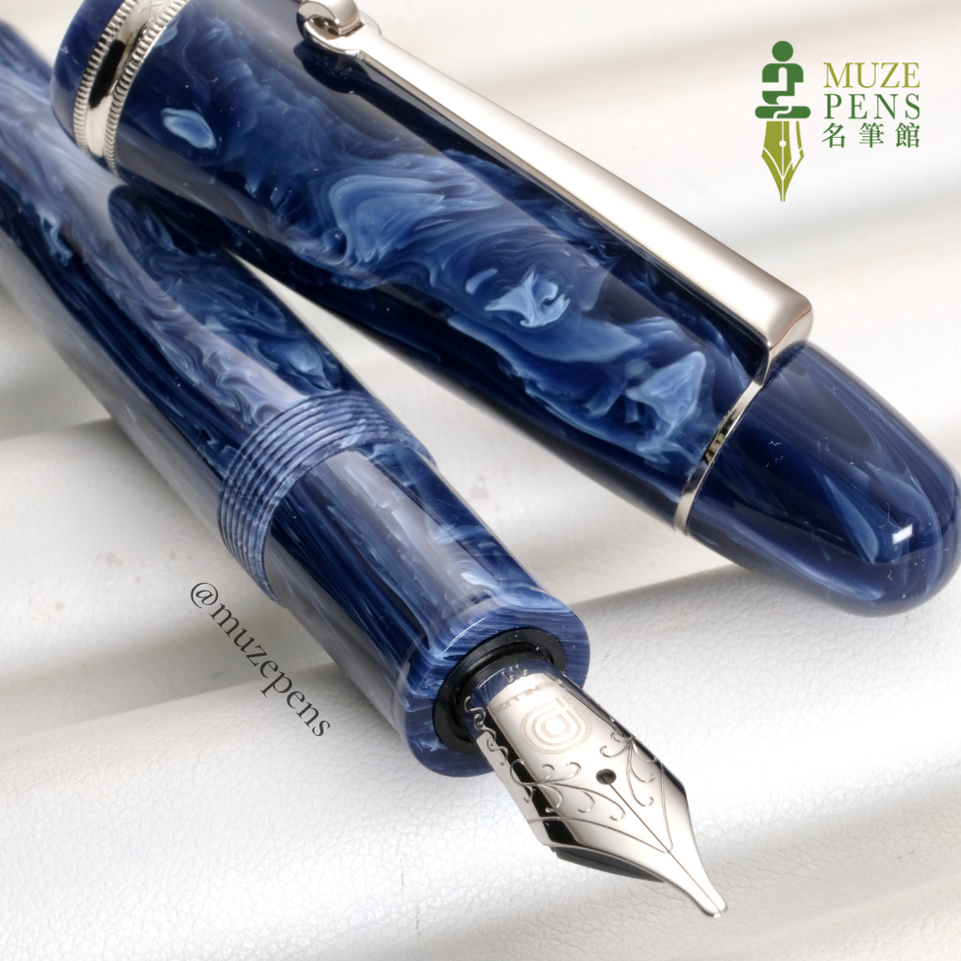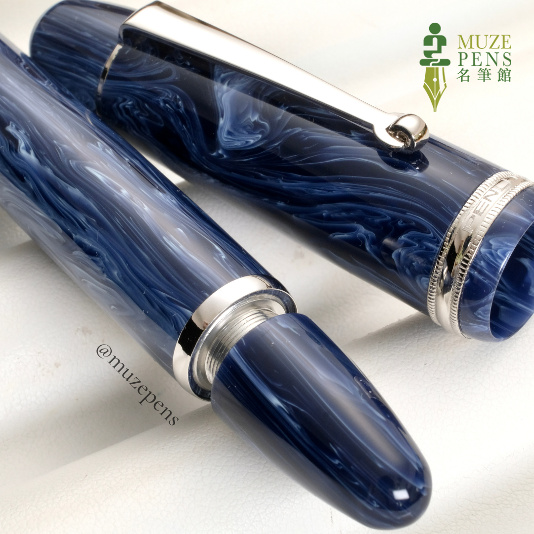 In the summer of 2021, Penlux launched a new pen collection: Masterpiece Grande Wave – Sky Blue. The “Sky Blue” wavy striated pattern is created by mixing white and blue high grade PMMA material.