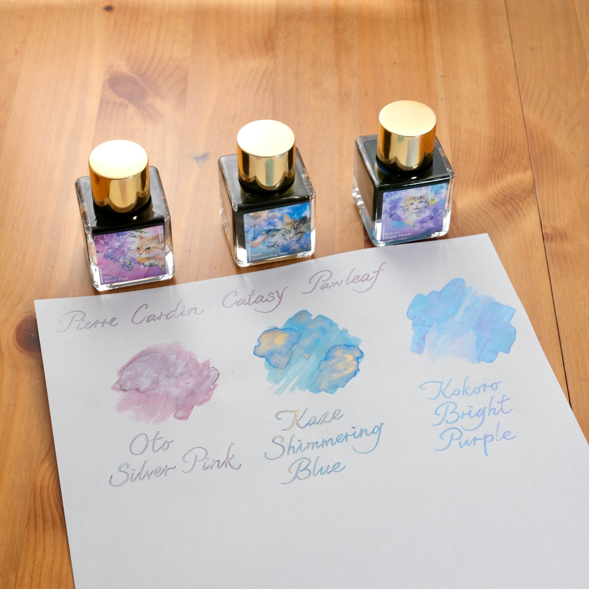 The Colours of Catasy Pawleaf Collection features enchanting ink colors with shimmering particles that depict cats in a floral setting. A must-have for cat enthusiasts!