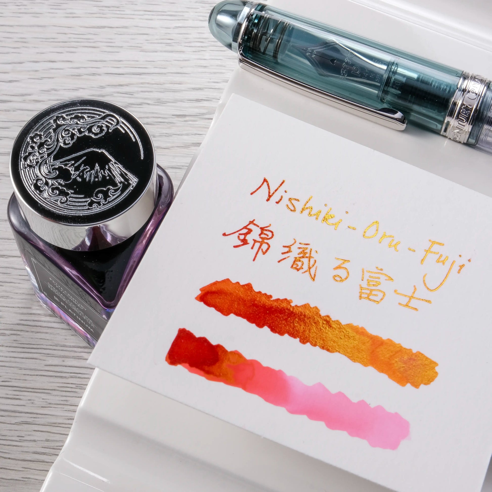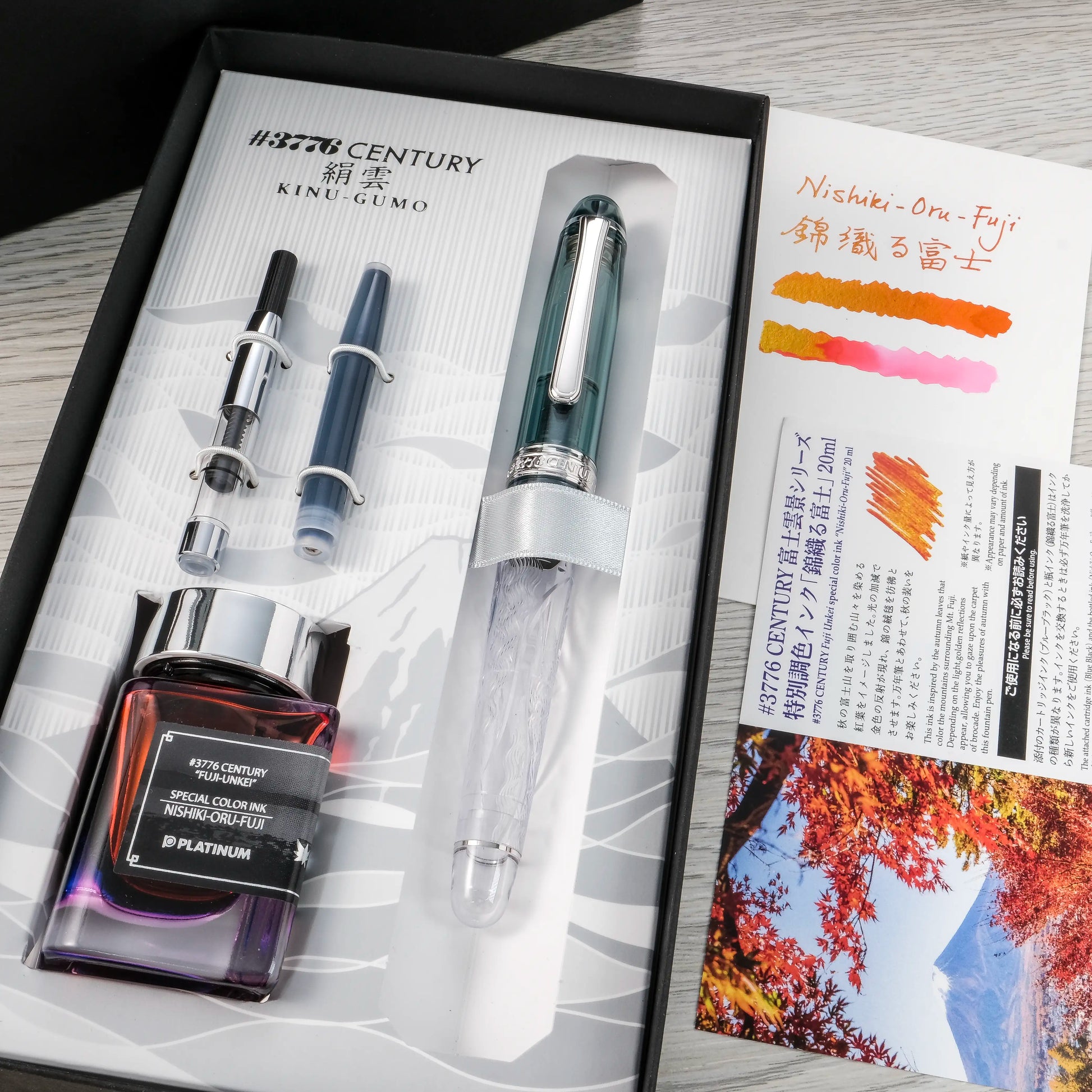 Packaged with: Pen box, converter, Blue Black cartridge x1, and the exclusive “Nishiki-Oru-Fuji” ink (20ml).