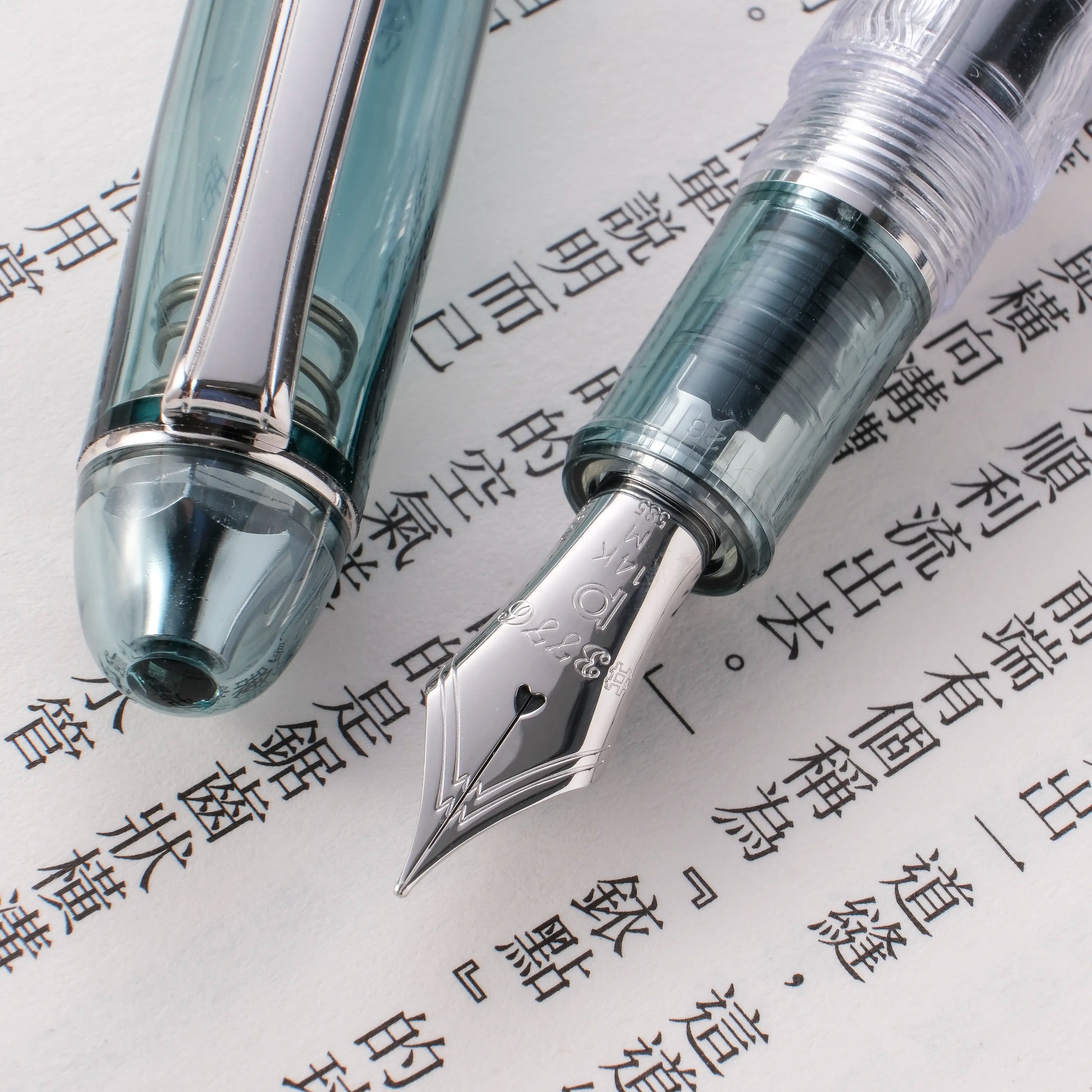 In comparison to other brands, Platinum's 14k gold nib is slightly larger at the shoulders, and offers a unique combination of firmness and responsiveness. It gives you some tactile feedback, and almost feels like you're writing with a pencil! Platinum has continued to make new and exciting versions of the #3776, with various materials and techniques today.