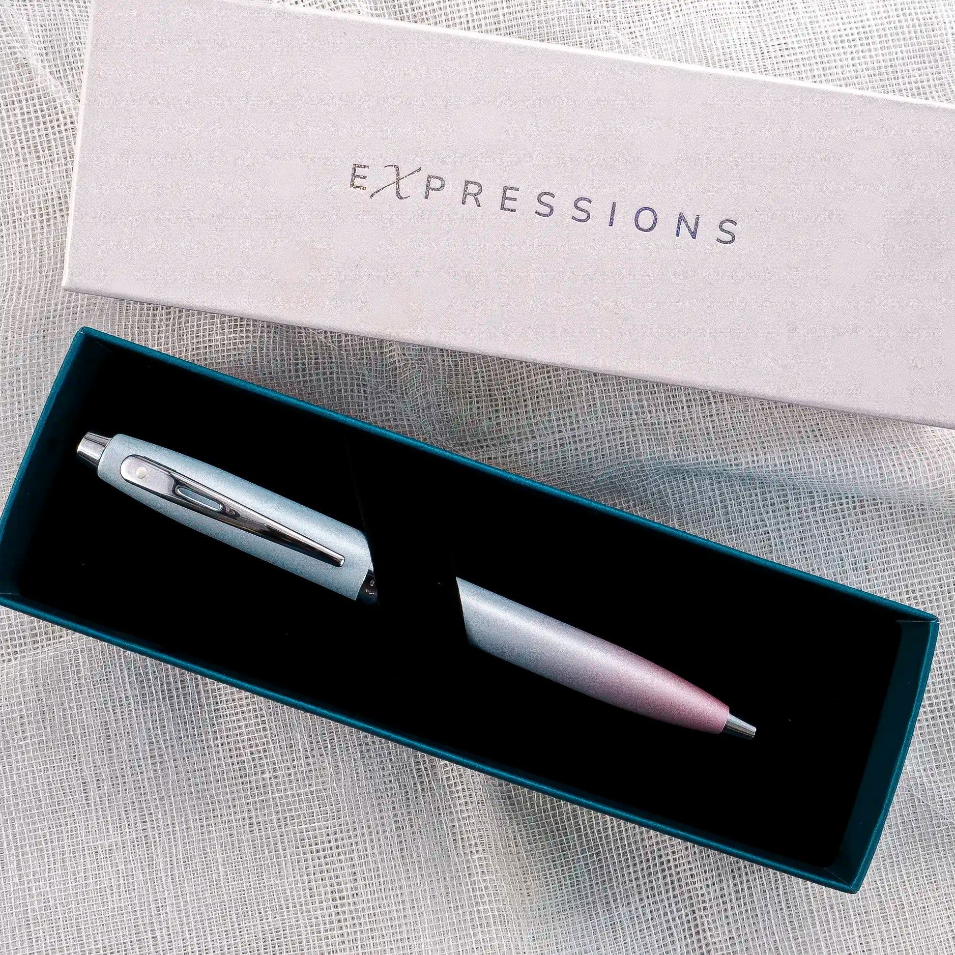 Experience the perfect blend of elegance and functionality with Sheaffer 100 Expressions Blue and Pink Pearlized Gradient Rollerball Pen. This exquisite writing instrument has a pen body exhibiting a unique tonal gradient that fades seamlessly from light powder blue to gentle pink in a pearlized finish. Paired with polished chrome details, you got a perfect pen for someone who possesses a tender, gentle and kind-hearted personality.