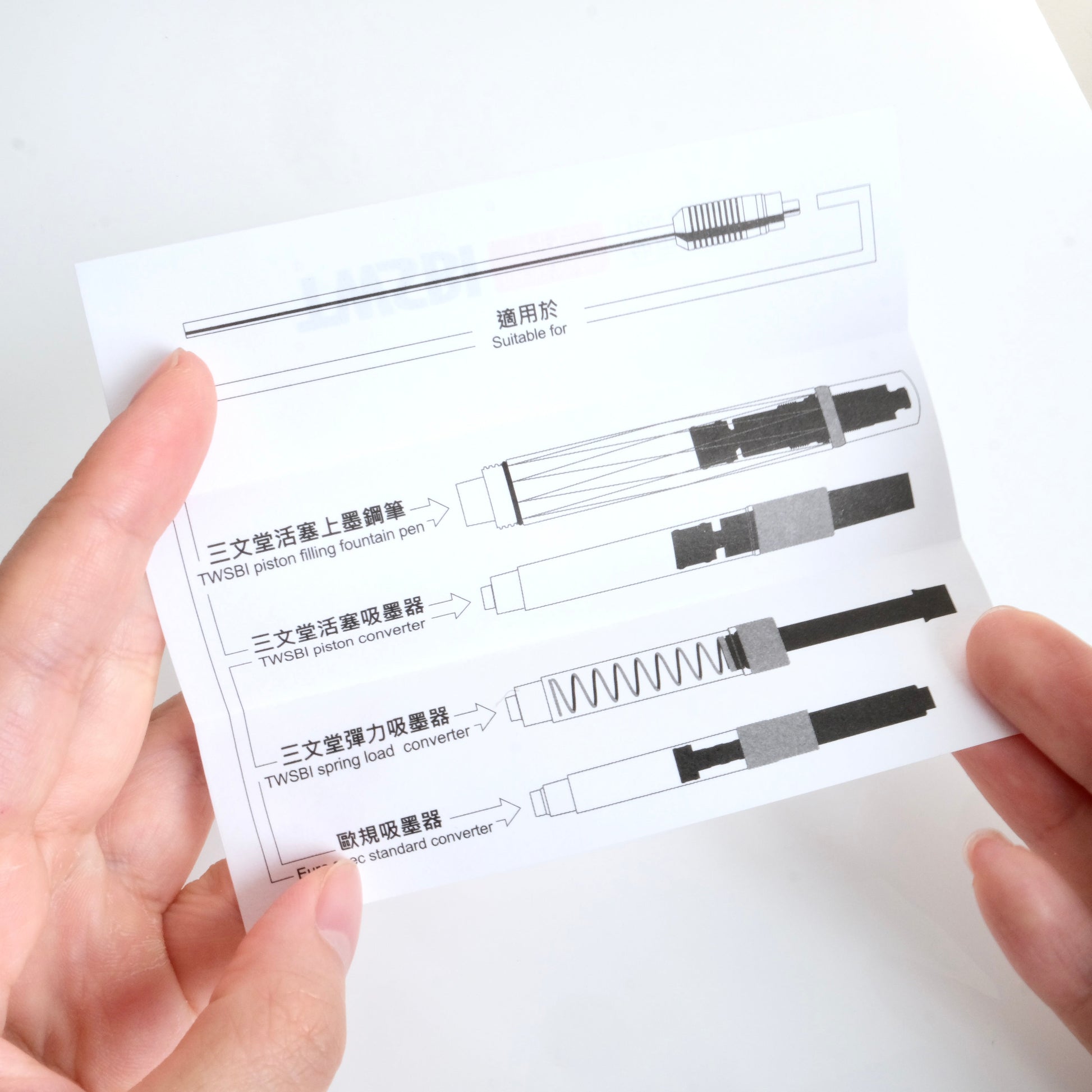 Also fits TWSBI converters: spring converter, traditional converter. (Top fitting standard international hole size)